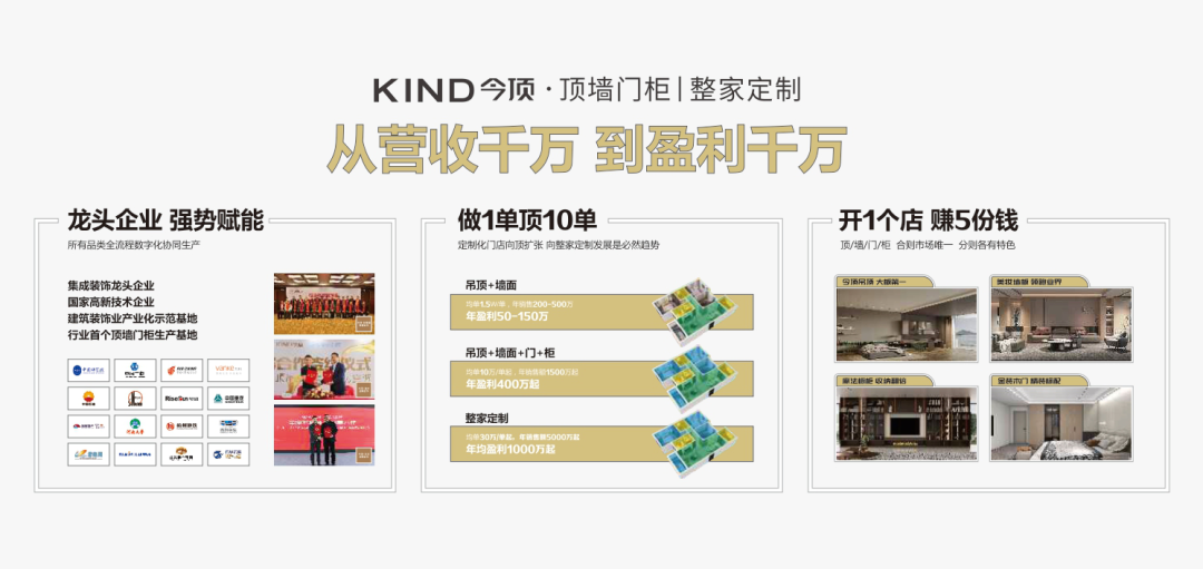 太阳城官网作为集成装饰龙头企业、国家高新技术企业、建筑装饰产业化示范基地、行业首个顶墙门柜生产基地企业,在行业整体趋势引领方面,实现门店“从营收千万,到盈利千万”的飞跃式增长;在内部赋能方面,建立“今管家帮扶系统”,完成新商培训赋能系统、新商开业帮扶系统、大单促成帮扶系统等全方位赋能行动。真正有实力有远见的品牌才能带领众多经销商门店掘金蓝海,实现突围与增长!本次展会上针对新商加盟更是带来了巨大福利政策!