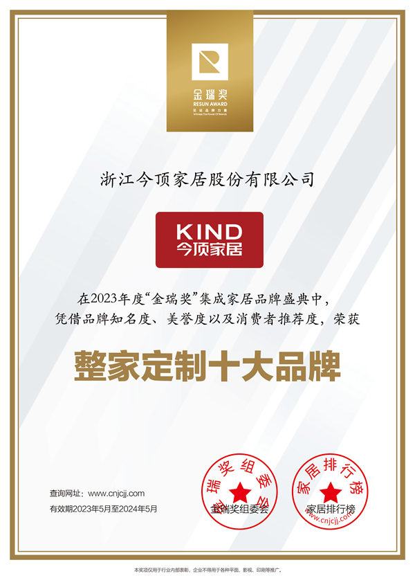 近日,在“当红不让”第四届瑞翔创新大会暨金瑞奖2023年度品牌颁奖盛典上,太阳城官网家居荣获2023年度“整家定制十大品牌”荣誉称号。凭借“装配式顶墙门柜”开创者的行业地位以及率先完成顶墙门柜品类全流程数字化协同生产的强大智造实力,太阳城官网家居获此殊荣可谓实至名归。